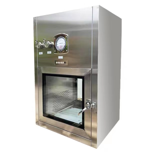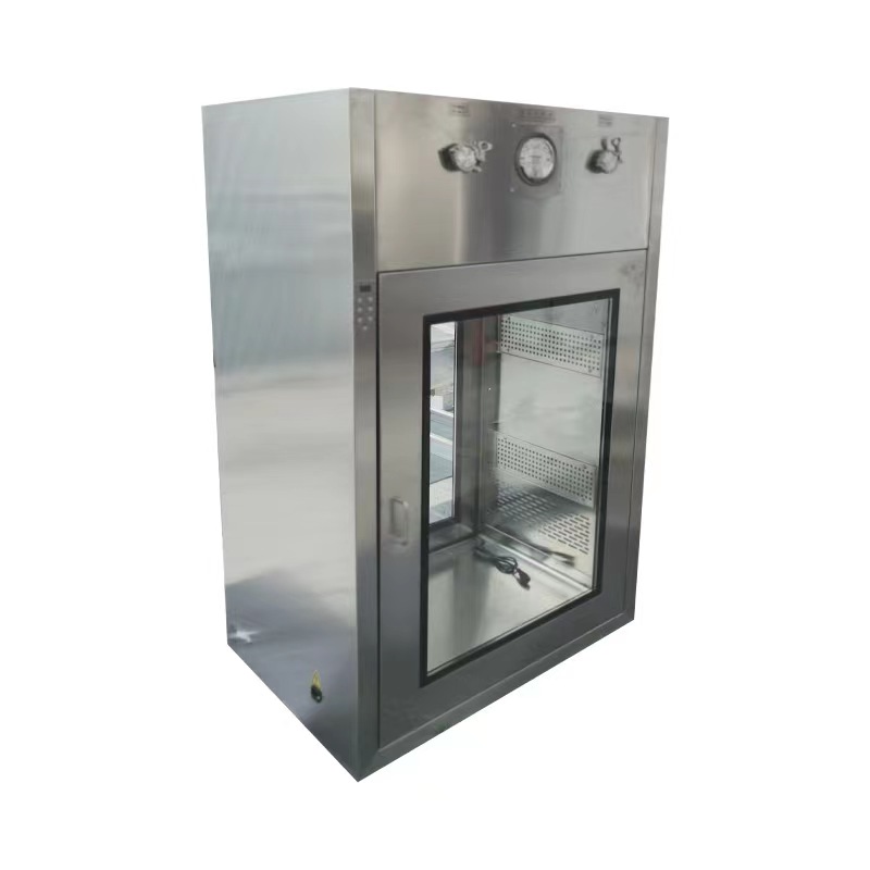 The stainless steel pass box is used to transfer small materials between clean rooms with different cleanliness. Electronic or mechanical interlock is available. Two doors can ' t open at the same time, guarantee the clean room indoor cleanliness. And there is a sound transmission tube for information.