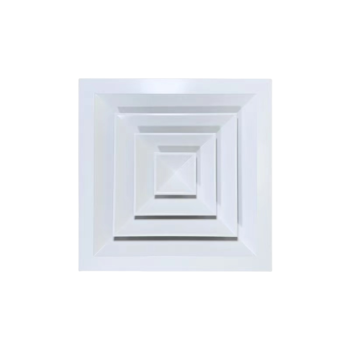 Diffusers are commonly used in air-conditioning systems as air supply outlets, with uniform flow characteristics and simple and beautiful appearance, can be made into a square or rectangular according to the requirements of the use of any ceiling decoration requirements. The inner core of the diffuser can be detached from the outer frame for easy installation and cleaning. The back of the diffuser can be equipped with an air outlet adjustment valve to control and adjust the airflow.